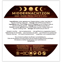 Ingredients : Water, Malted barley, oat flakes, Sugar, Hop Saaz and Styrian Golding, High yeast, Energy : 393 kJ/93 kcal per 100 ml